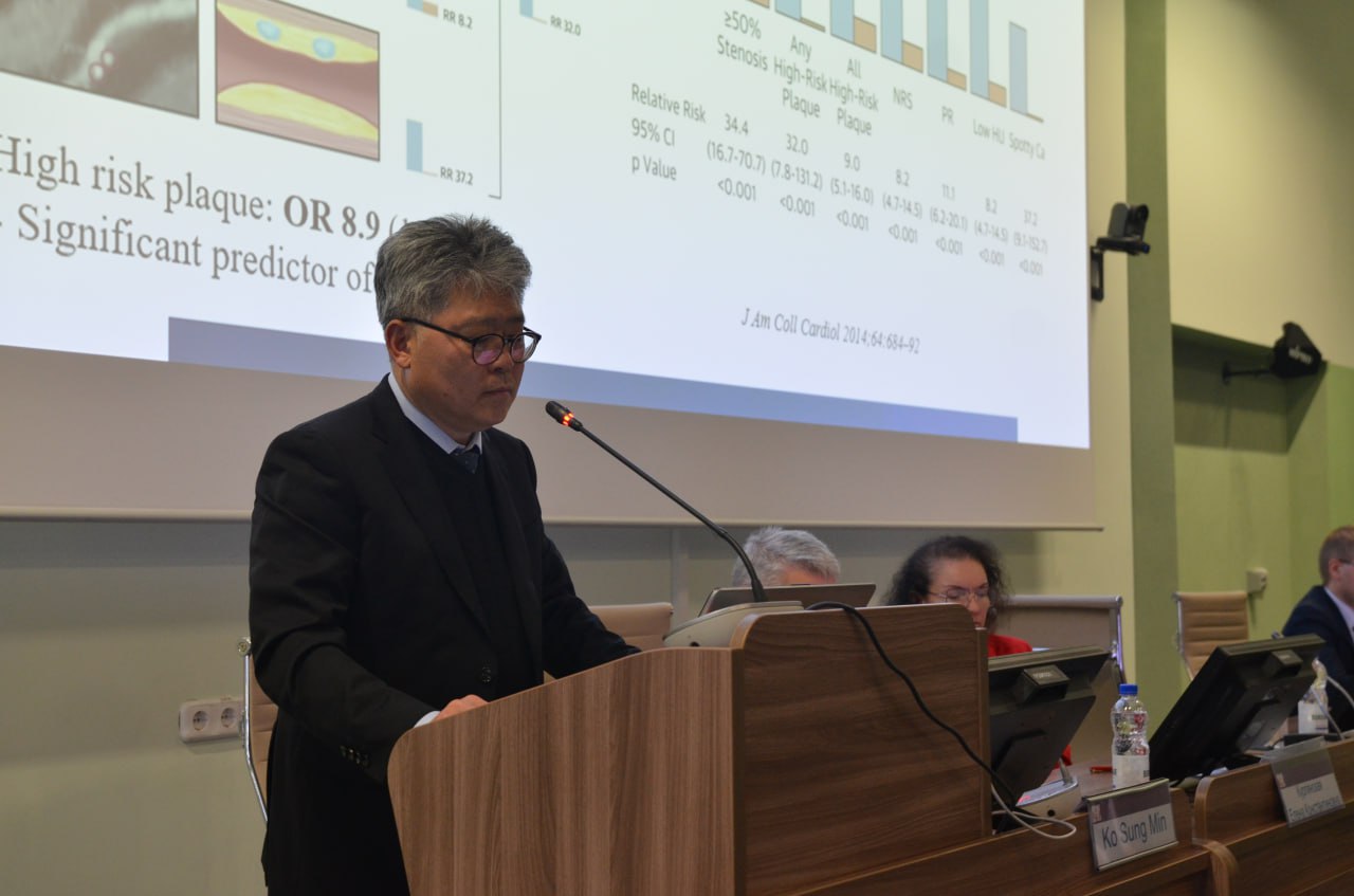 «Компьютерная томография для оценки гемодинамической значимости ишемической болезни сердца» - Ко Сон Мин, профессор отделения радиологии и визуализации сердечно-сосудистых заболеваний университета Енсе, христианская больница Северанс в Вонджу, д.м.н., профессор, г.Вонджу, Республика Корея;
