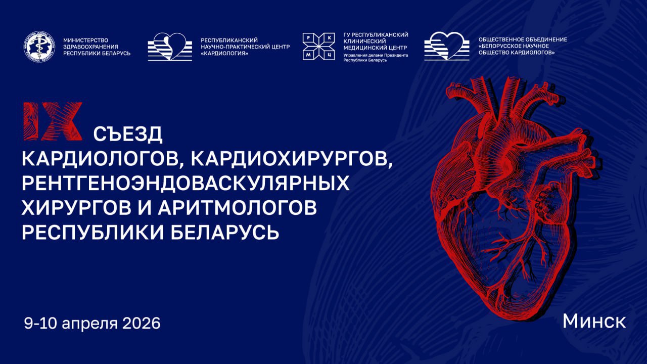 здравоохранения Республики Беларусь 9–10 апреля 2026 года состоится IX Съезд кардиологов, кардиохирургов, рентгеноэндоваскулярных хирургов и аритмологов Республики Беларусь.