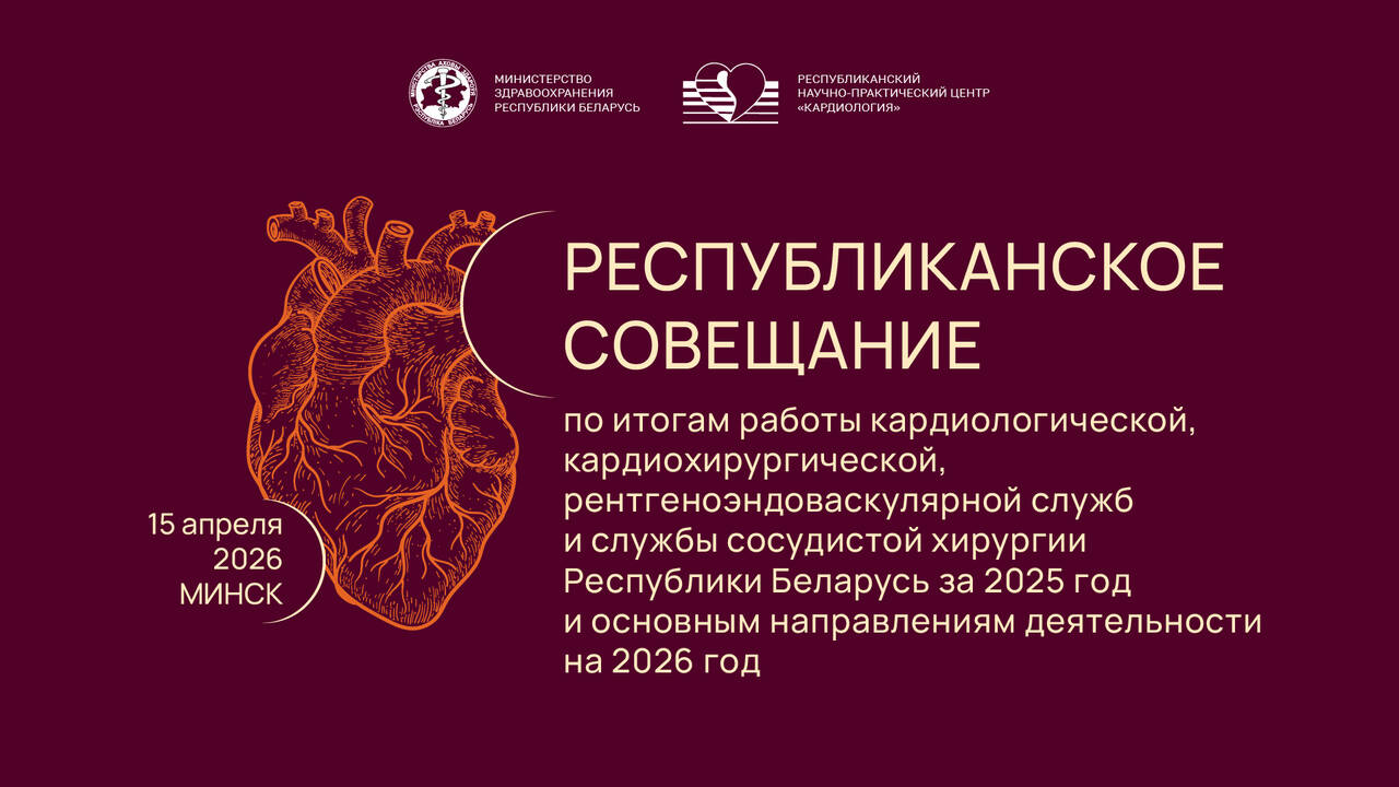 15 апреля 2026 года на базе государственного учреждения «Республиканский научно-практический центр «Кардиология» Министерства здравоохранения Республики Беларусь состоялось Республиканское совещание по итогам работы кардиологической, кардиохирургической, рентгеноэндоваскулярной служб и службы сосудистой хирургии Республики Беларусь за 2025 год и основным направлениям деятельности на 2026 год.