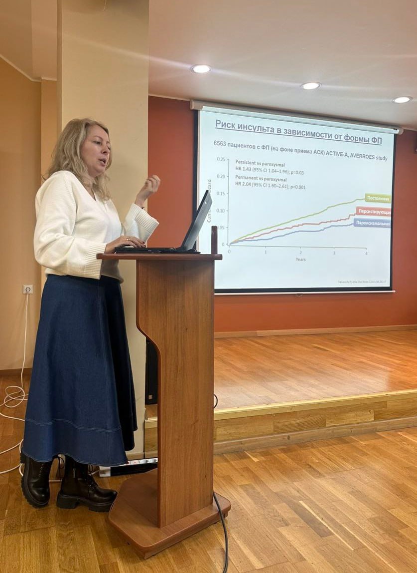 -«Возможности кардиолога в минимизации тромбоэмболических рисков при фибрилляции предсердий» (ведущий научный сотрудник лаборатории нарушения сердечного ритма к.м.н., доцент Вероника Барсукевич).