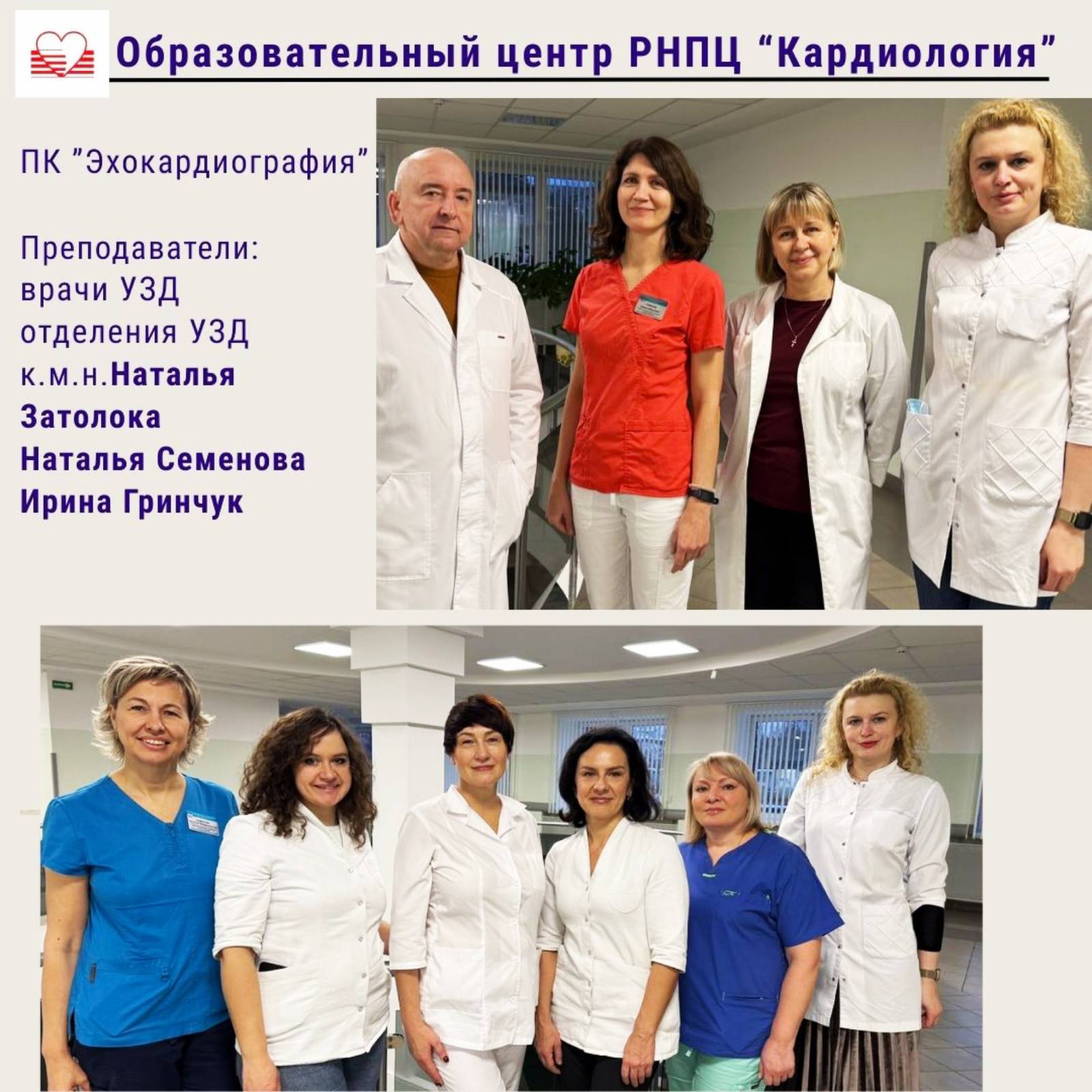 Повышение квалификации «Эхокардиография» (2-13.03.2026). Преподаватели: врачи ультразвуковой диагностики отделения ультразвуковой диагностики к.м.н. Наталья Затолока и Ирина Гринчук;