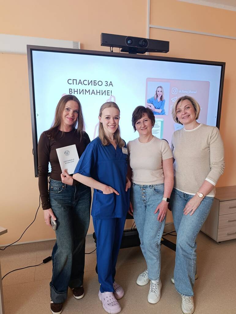 Преподаватели – сотрудники Центра: заведующий образовательным центром к.м.н., доцент Ирэна Карпова, врач ультразвуковой диагностики Оксана Попель, врачи функциональной диагностики Елена Ковалкина и Жанна Кот.