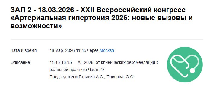 18.03.2026 заведующий лабораторией артериальной гипертензии и сердечно-сосудистой профилактики, д.м.н., доцент Ольга Павлова приняла участие в XXII Всероссийском конгрессе «Артериальная гипертония 2026: новые вызовы и возможности» в качестве председателя секции "АГ 2026: от клинических рекомендаций к реальной практике. Часть 1", где выступила с онлайн-докладом "Эффективная органопротекция при артериальной гипертензии".