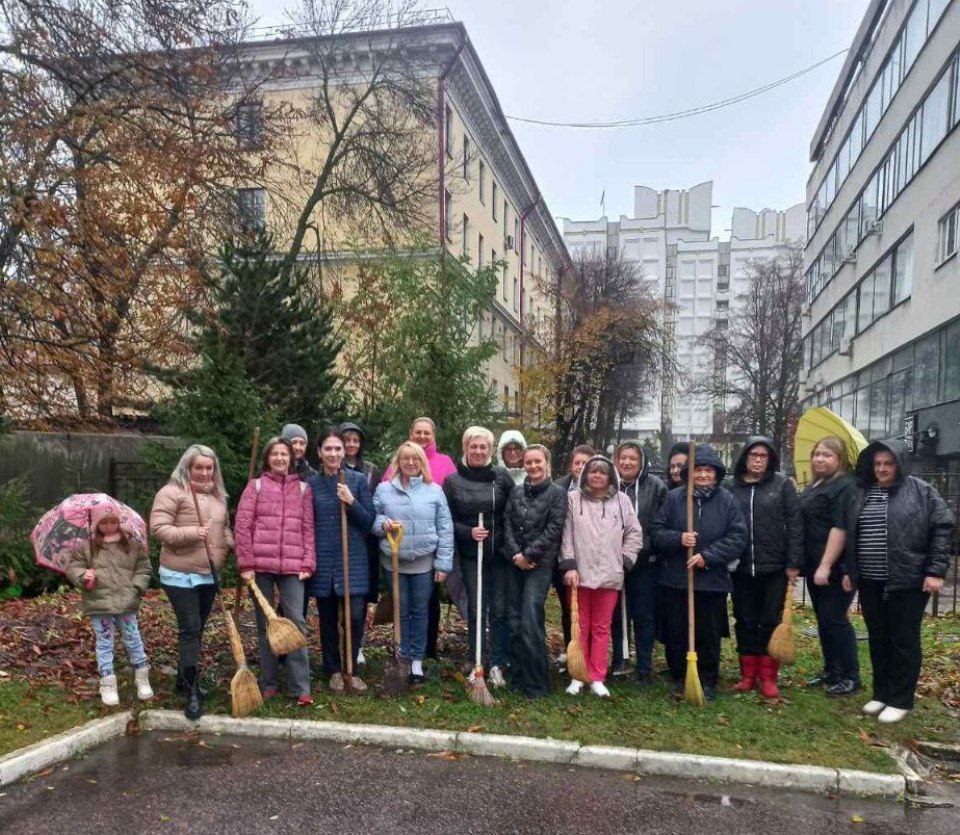 Сотрудники Центра, в том числе представители первичной профсоюзной организации, активисты первичных организаций РОО «Белая Русь», ОО «Белорусский союз женщин» и ОО «Белорусский республиканский союз молодежи», во главе с директором Андреем Пристромом проводят субботник на рабочих местах, а территория Центра приведена в порядок накануне.